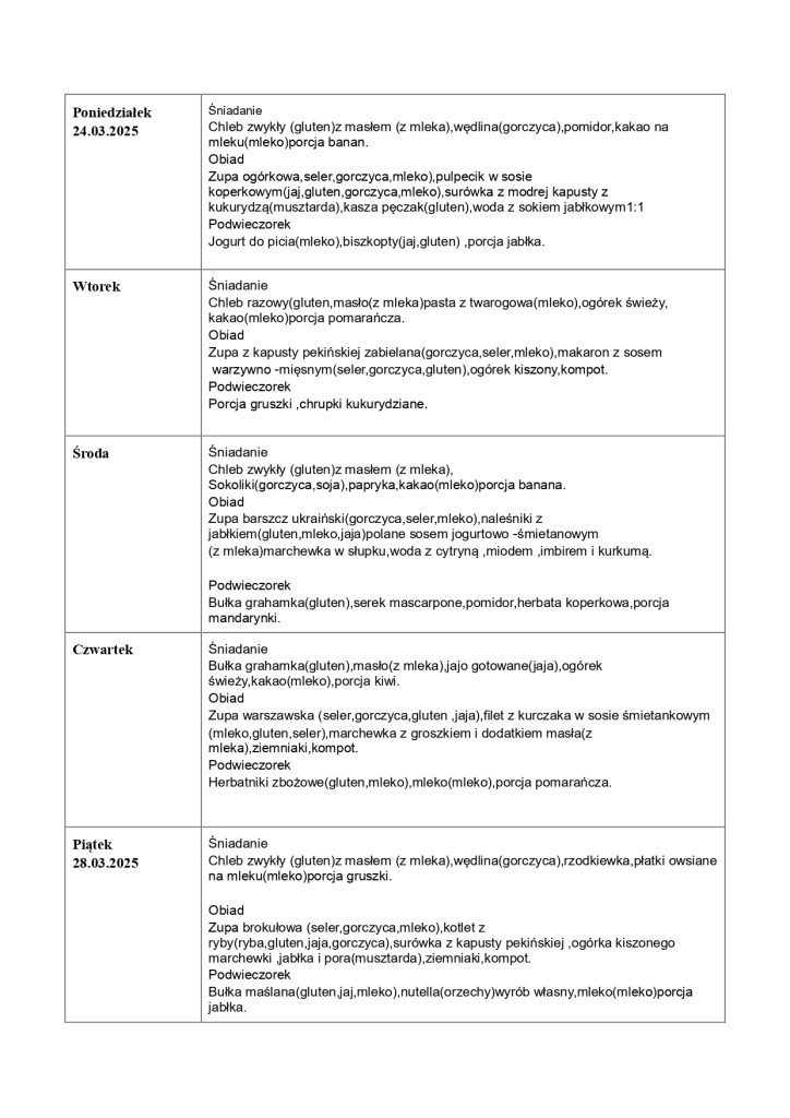 Tygodniowe Menu