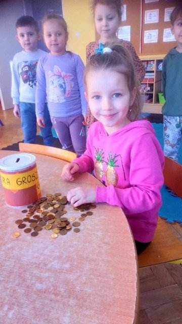 Przedszkolaki z wielkimi sercami – podsumowanie akcji „Góra grosza” Nasze przedszkole po raz kolejny wzięło udział w ogólnopolskiej akcji „Góra grosza”, organizowanej przez Towarzystwo Nasz Dom. Celem zbiórki było wsparcie dzieci znajdujących się w trudnej sytuacji życiowej. Dzięki zaangażowaniu przedszkolaków, rodziców i pracowników przedszkola udało się uzbierać imponującą kwotę 382,76 zł. Każda moneta wrzucona do skarbonki była symbolem dobroci i chęci niesienia pomocy innym. Serdecznie dziękujemy wszystkim, którzy wsparli zbiórkę i zapraszamy do udziału w przyszłorocznej edycji. Katarzyna Dzikiel Joanna Jurczyk Urszula Sokół