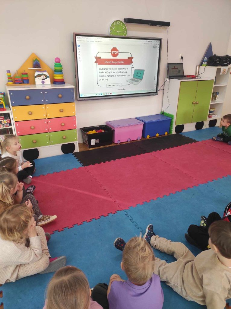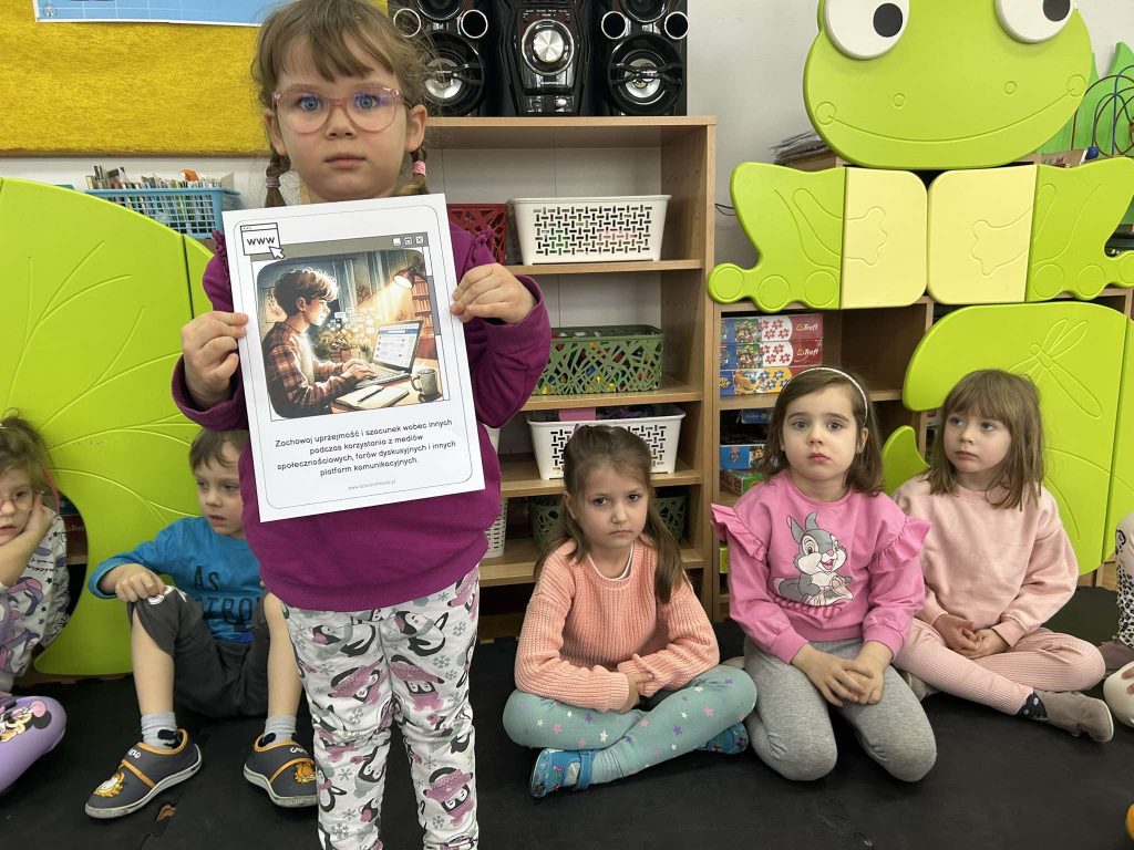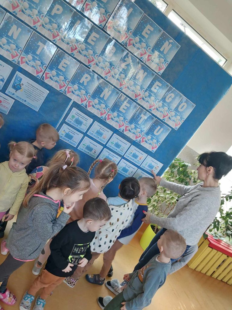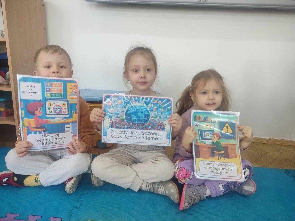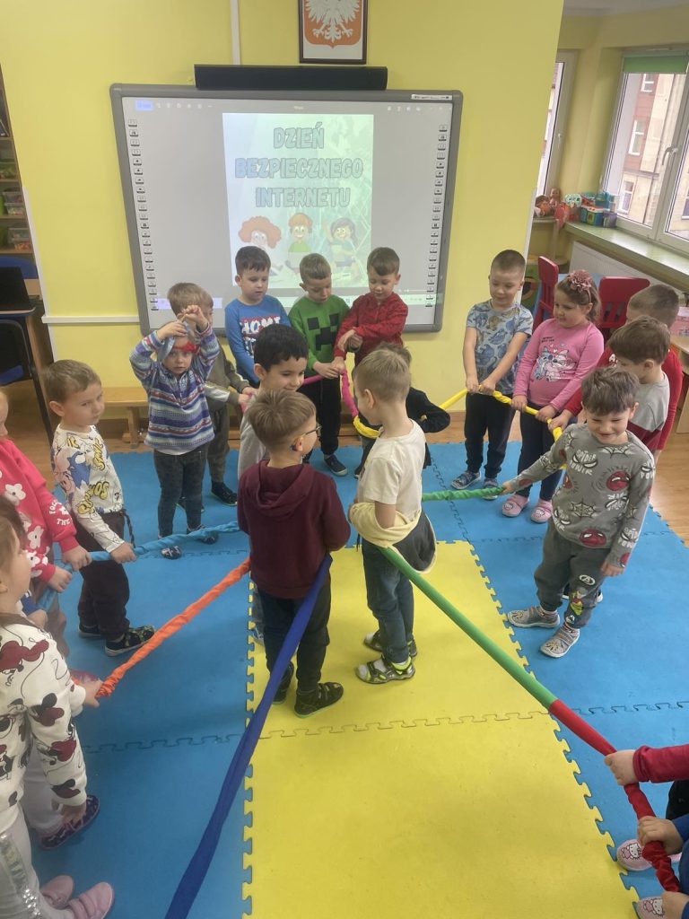 11.02.2025 r. w naszym przedszkolu odbył się Dzień Bezpiecznego Internetu. Chociaż tematy związane z bezpieczeństwem w internecie mogą wydawać się skomplikowane, nauczyciele zadbali o to, aby zajęcia były dostosowane do wieku dzieci. W salach odbyły się zajęcia, podczas których przedszkolaki dowiedziały się, czym jest internet i dlaczego warto korzystać z niego ostrożnie. Dzieci miały okazję uczestniczyć w zabawach ruchowych oraz słuchać opowiadania pt.: „Mały miś odkrywa internet”. Tworzone były również plakaty promujące bezpieczne korzystanie z internetu.