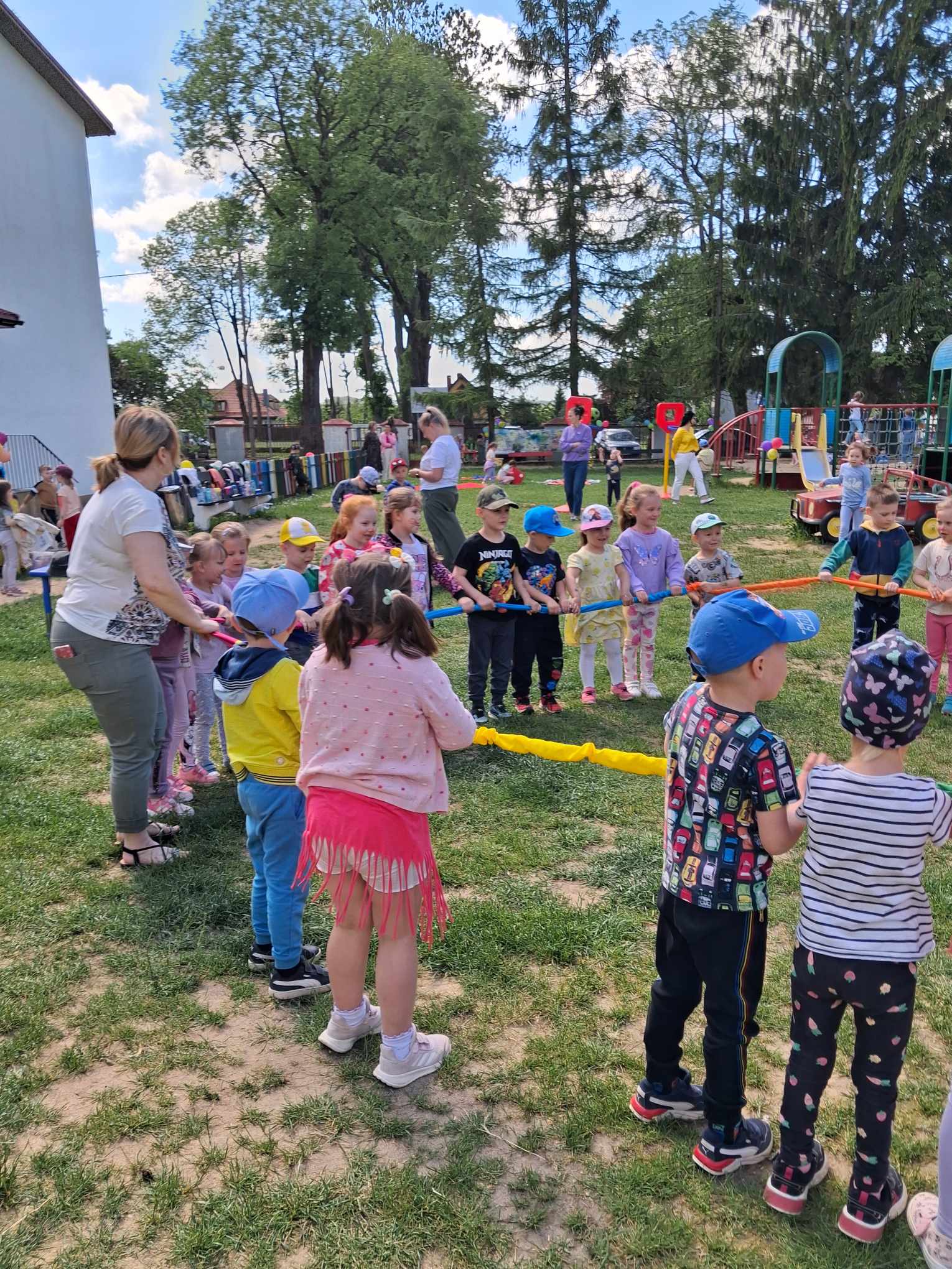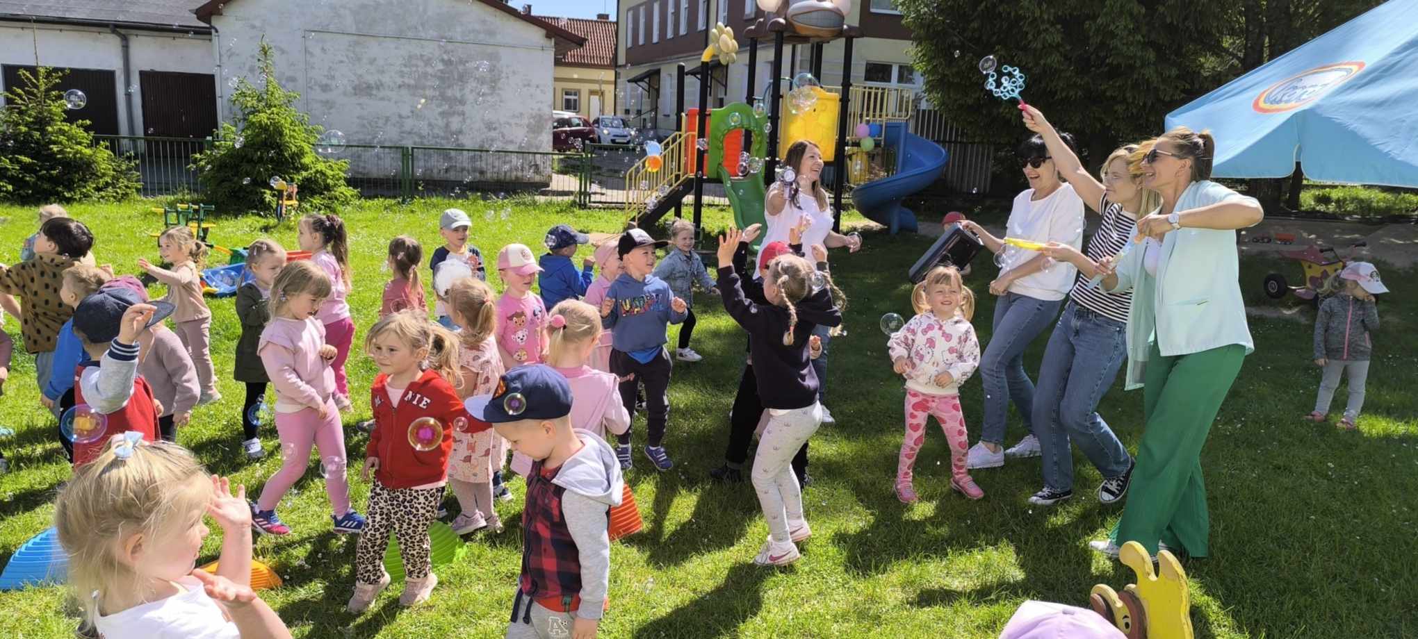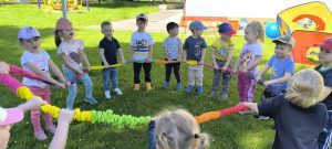 Każdy dzień w przedszkolu może być ciekawy. Jednakże jest taki dzień w roku, kiedy dzieci czują się szczególnie ważne, a wszyscy dorośli chcą im sprawić radość. To Dzień Dziecka – dzień, który uwielbiają wszystkie dzieci, te małe i te duże. To dzień pełen uśmiechów, zabawy, niespodzianek, radości i wielu niezapomnianych wrażeń! W naszym przedszkolu tego dnia również nie zabrakło atrakcji. Były tańce, zabawy, upominki, pyszne owoce na deser, kolorowe balony i wiele innych niespodzianek. Mamy nadzieję, że ten dzień, który obfitował w mnóstwo pozytywnych wrażeń będzie mile wspominany przez dzieci. Jeszcze raz życzymy wszystkim naszym dzieciom dużo radości i uśmiechu!