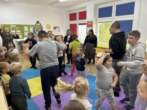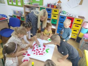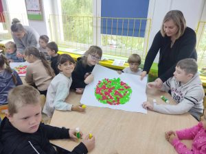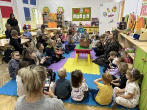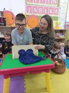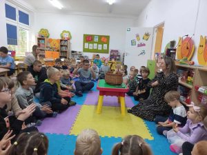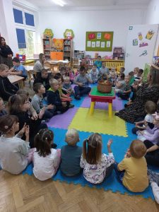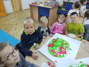 28 września obchodzony jest Światowy Dzień Jabłka. Dzieci z grupy 3-latków A oraz 4-latków „A”, także włączyły się w obchody tego wyjątkowego dnia. Przedszkolaki wszechstronnie poszerzały wiedzę o jabłku. Tego dnia, dzieci z grupy 4-latków „A” odwiedzili wychowankowie Zespołu Placówek Edukacyjno-Wychowawczych w Gołdapi. To był bardzo ciekawy dzień w przedszkolu. Były okazje do wykonania zadań matematycznych typu przeliczanie jabłek, porównywanie wielkości, kształtu, koloru oraz smaku. Dzieci zdobywały wiadomości na temat potraw i przetworów z jabłek, wykonały plakaty oraz prace plastyczne. Dokonały degustacji samodzielnie wyciśniętego soku z jabłek oraz zaśpiewały wspólnie piosenkę o jabłuszku, a na koniec zatańczyły taniec do piosenki „Góry do góry”.