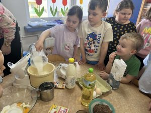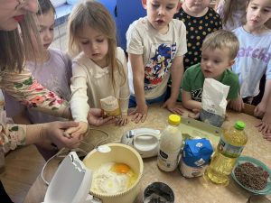 W naszym przedszkolu odbył się wyjątkowy i bardzo słodki  Dzień Muffinki.     Dzieci z grupy 5-latków A od samego rana były podekscytowane, ponieważ czekało na nie wiele ciekawych atrakcji związanych z tym pysznym wypiekiem. Dzień rozpoczęliśmy        od rozmowy na temat muffinek. Przedszkolaki poznały składniki potrzebne do  przygotowania babeczek oraz kolejność ich dodawania. Była to świetna okazja do nauki poprzez zabawę. Wyjątkowym elementem tego dnia było zaangażowanie jednego z rodziców, który przygotował dla dzieci pyszne, domowe babeczki. Największą atrakcją było wspólne przygotowywanie muffinek przez dzieci. Z pomocą nauczyciela przedszkolaki wsypywały składniki, mieszały ciasto i nakładały je do foremek. Każde dziecko mogło ozdobić swoją muffinkę według własnego pomysłu. W oczekiwaniu na wypieki, dzieci brały udział w zabawach tematycznych. Były zagadki, a także prace plastyczne. Dzieci kolorowały i wyklejały papierowe babeczki. Na zakończenie dnia przyszedł czas na degustację. Zapach świeżo upieczonych muffinek wypełnił całą salę, a dzieci z dumą próbowały swoich wypieków oraz tych przygotowanych przez Panią Krystianę. To był nie tylko smaczny, ale także bardzo radosny i integrujący dzień, który na długo pozostanie w pamięci naszych przedszkolaków.
