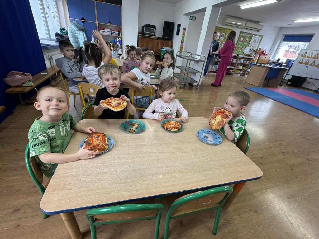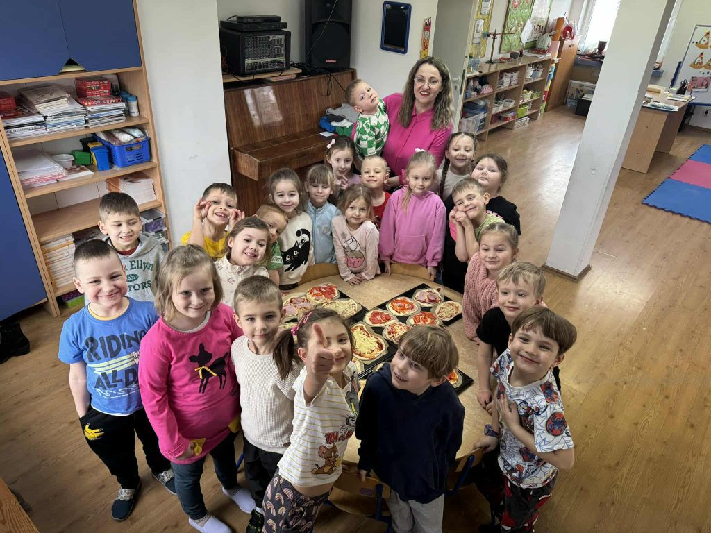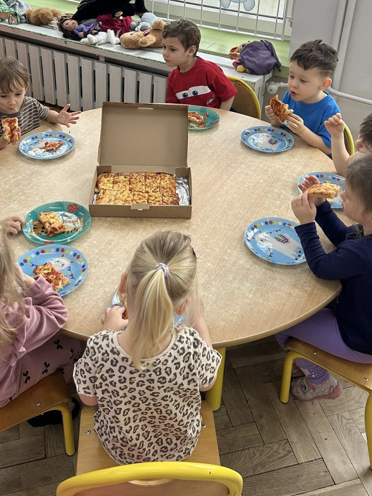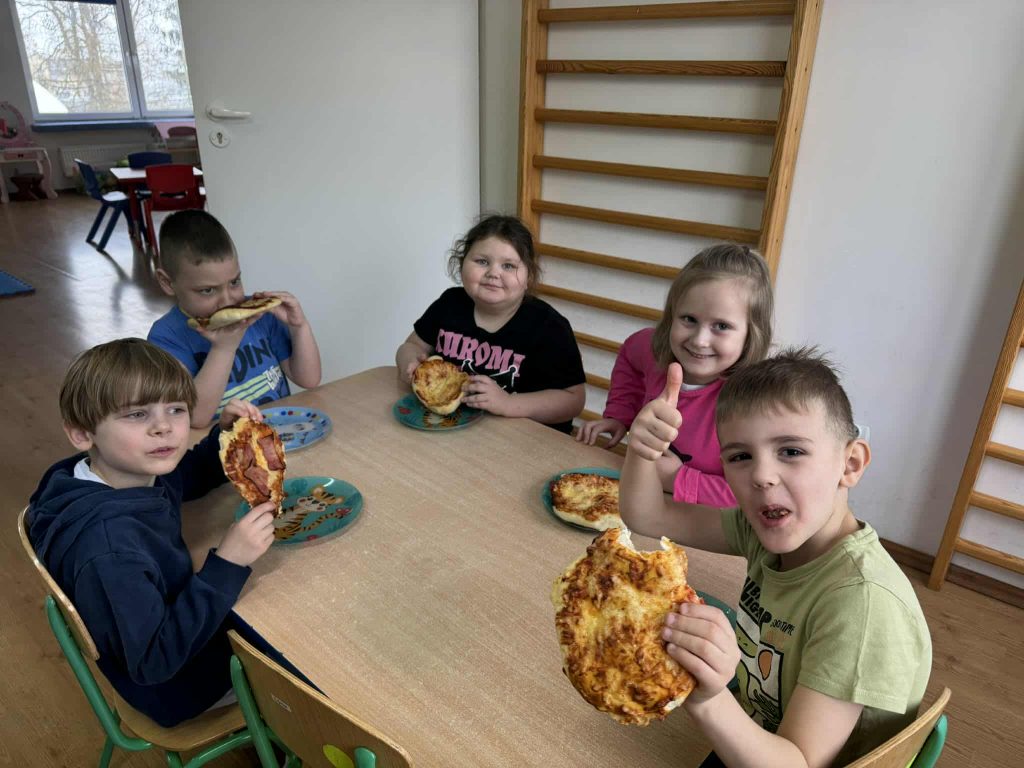 Radość i duma z własnoręcznie przygotowanych pizz była ogromna, a uśmiechy na twarzach dzieci mówiły wszystko. Dzień Pizzy był nie tylko pyszną przygodą kulinarną, ale także wspaniałą okazją do nauki poprzez zabawę. To był dzień pełen radości, współpracy i smakowitych wrażeń!