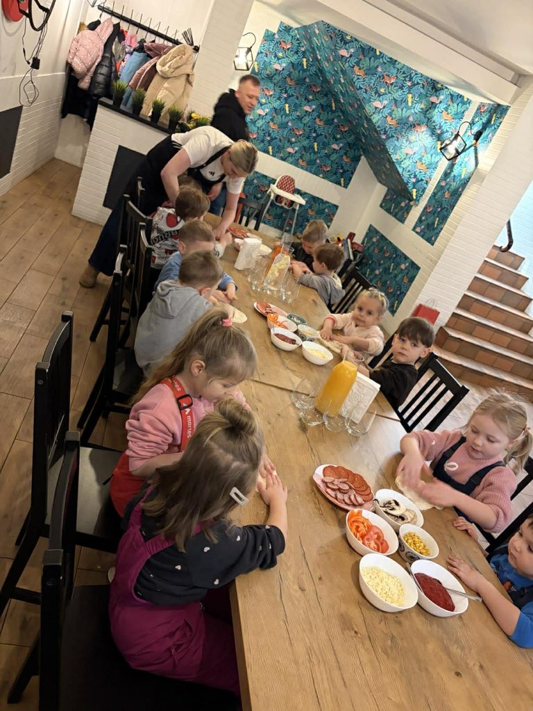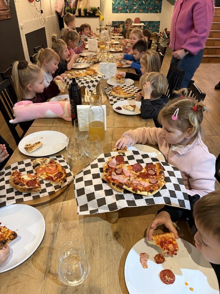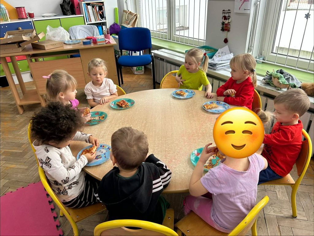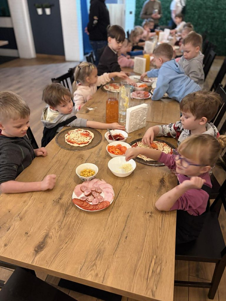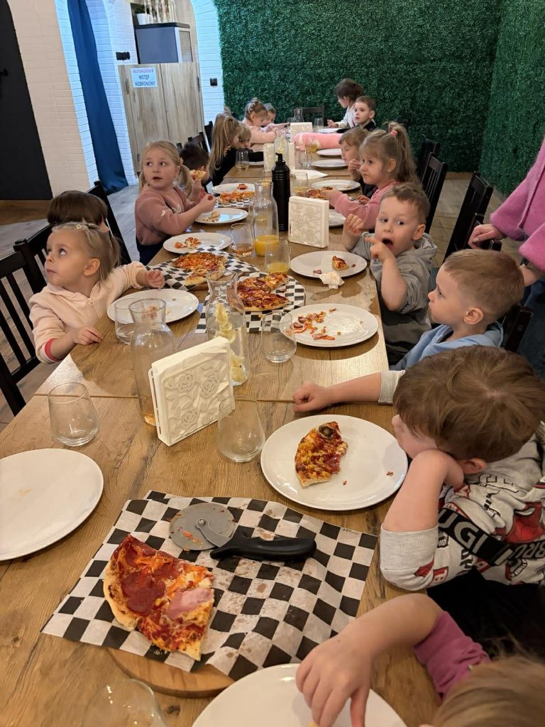 Radość i duma z własnoręcznie przygotowanych pizz była ogromna, a uśmiechy na twarzach dzieci mówiły wszystko. Dzień Pizzy był nie tylko pyszną przygodą kulinarną, ale także wspaniałą okazją do nauki poprzez zabawę. To był dzień pełen radości, współpracy i smakowitych wrażeń!