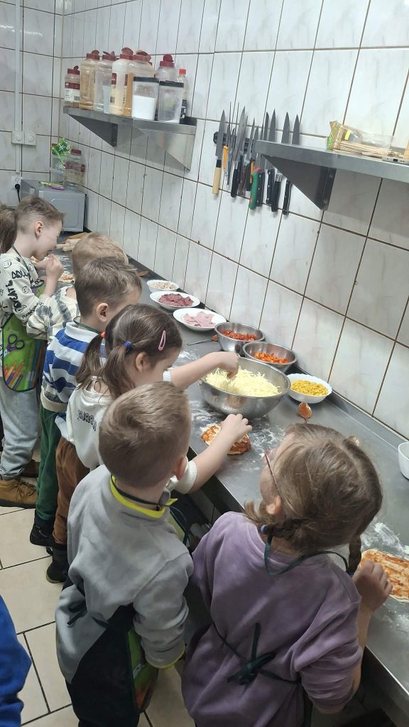 W naszym przedszkolu obchodziliśmy wyjątkowe i bardzo smaczne święto – Dzień Pizzy! Tego dnia dzieci zamieniły się w prawdziwych małych kucharzy . Z tej okazji dzieci grupy 4-latków ,,B” , 5-latków ,,B” wybrały się z wizytą do pizzerii, a pozostałe przedszkolaki wcieliły się w rolę kucharzy w przedszkolu. Już od rana w salach unosił się zapach świeżych składników.