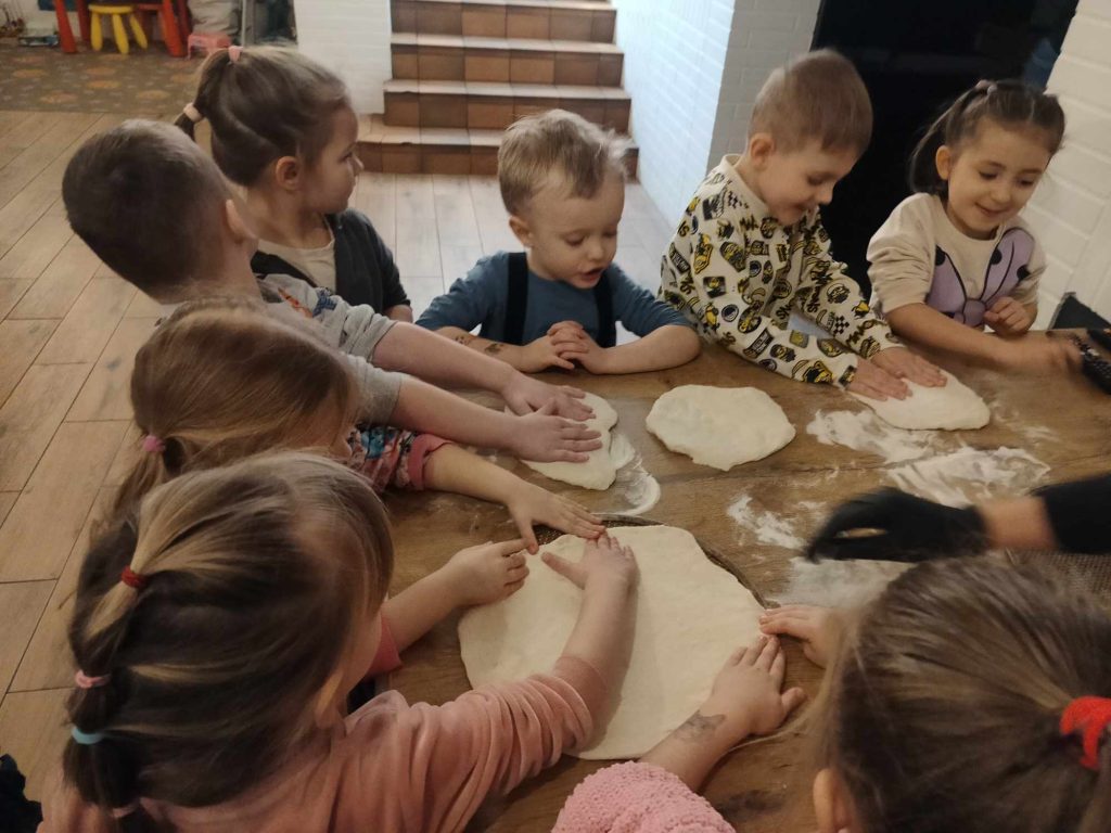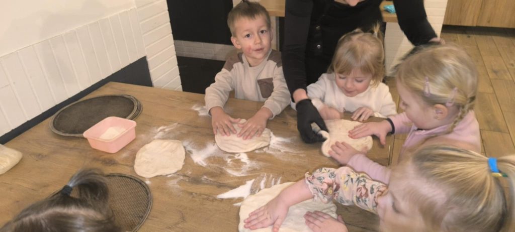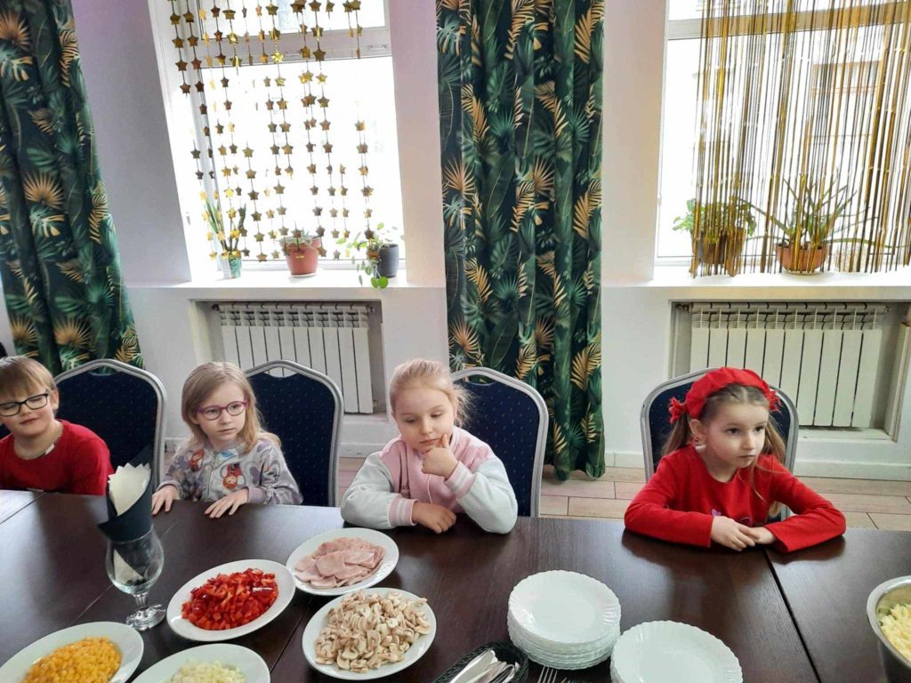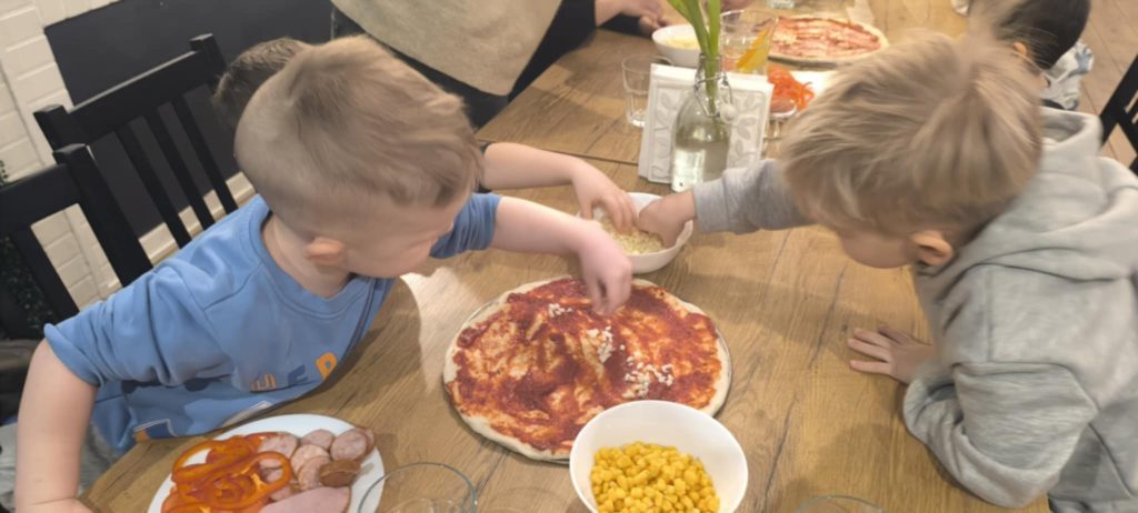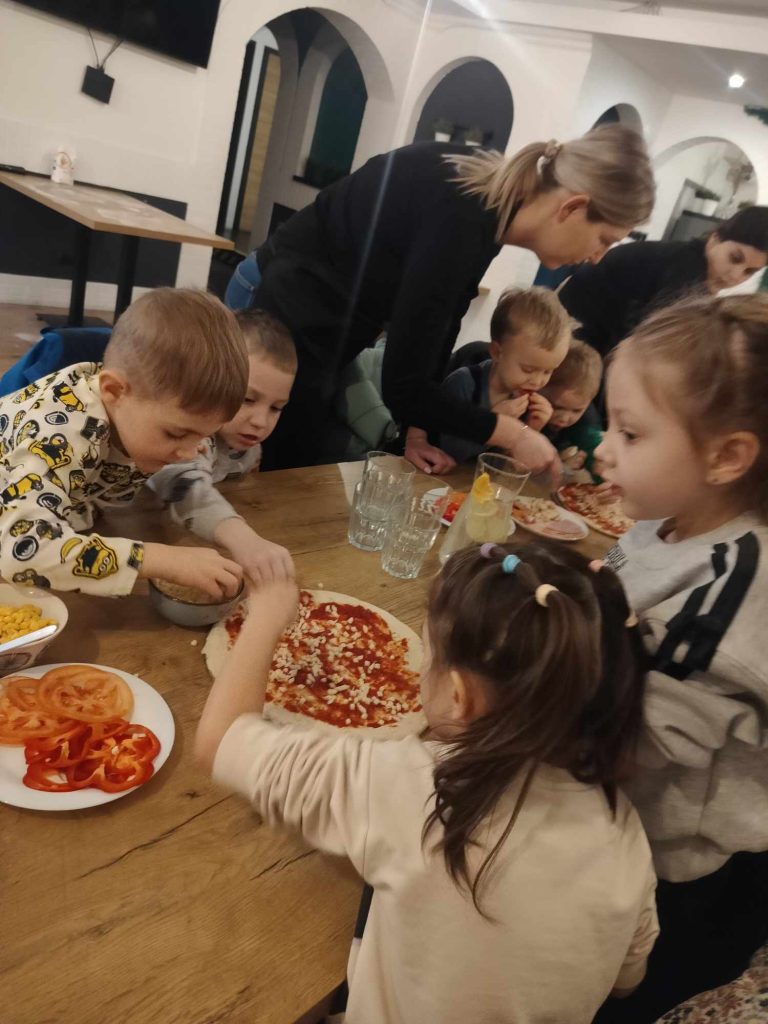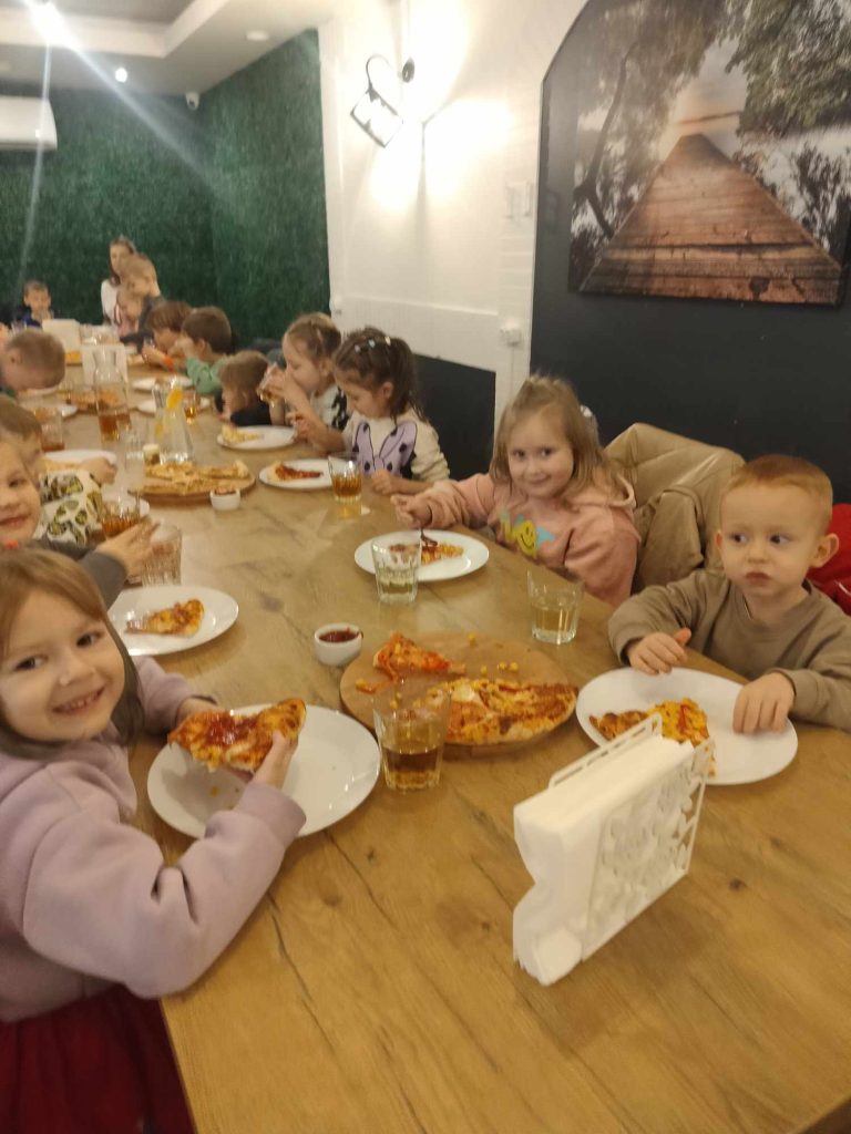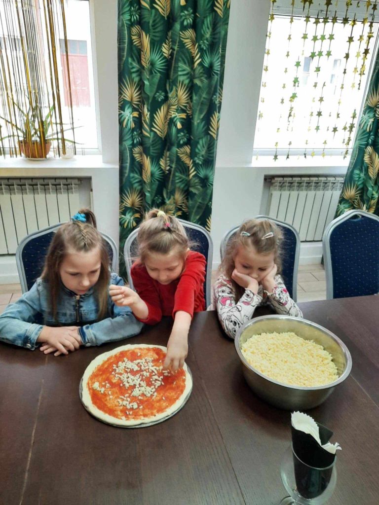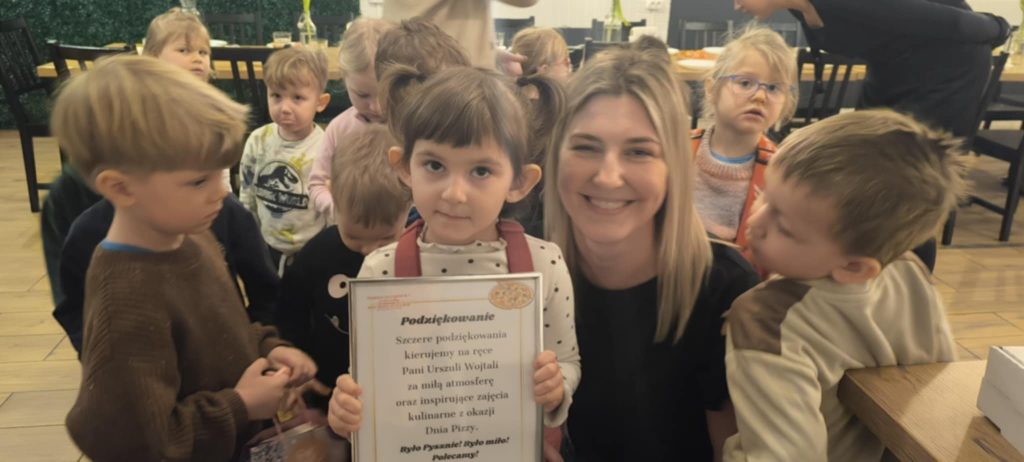 9 lutego w naszym przedszkolu obchodziliśmy Dzień Pizzy. Z tej okazji dzieci grupy 4-latków ,,A” , 3-latków ,,A” oraz 5-latków ,,C” wybrały się z wizytą do pizzerii, a pozostałe przedszkolaki wcieliły się w rolę kucharzy w przedszkolu. Dzieci poznały historię pochodzenia pizzy, sposób jej przygotowania oraz potrzebne składniki. Po części teoretycznej mogły przystąpić do działania. Z wielkim zaangażowaniem zabrały się do pracy. Ugniatały ciasto, formowały placki, smarowały sosem, układały ulubione składniki: wędlinę, paprykę, kukurydze i posypywały wszystko serem. Przygotowane pizze trafiły do pieca. Piękne zapachy rozchodziły się po całym przedszkolu. Dzieci z niecierpliwością czekały na degustację swojej pizzy, które w mgnieniu oka zniknęły z talerzy.
