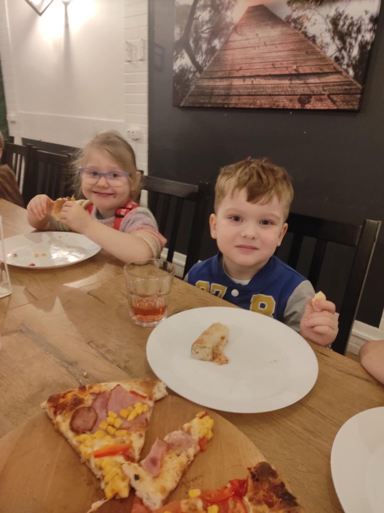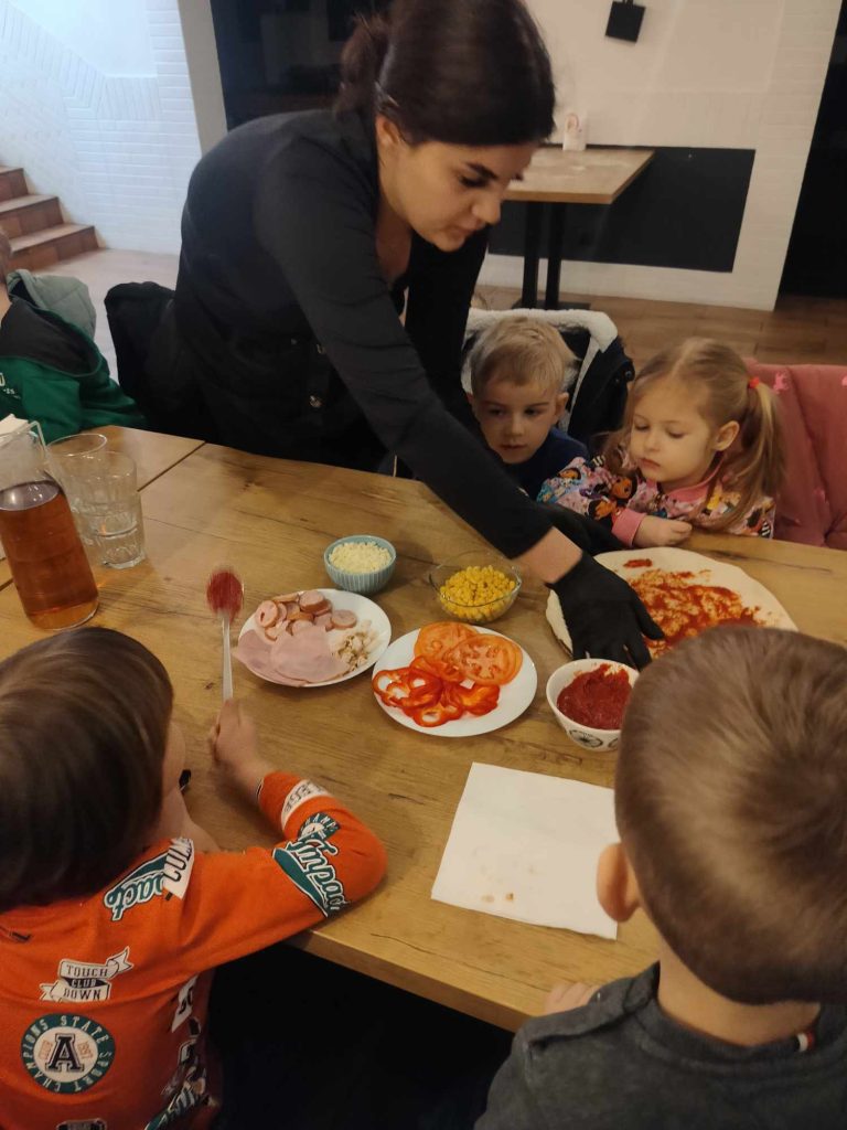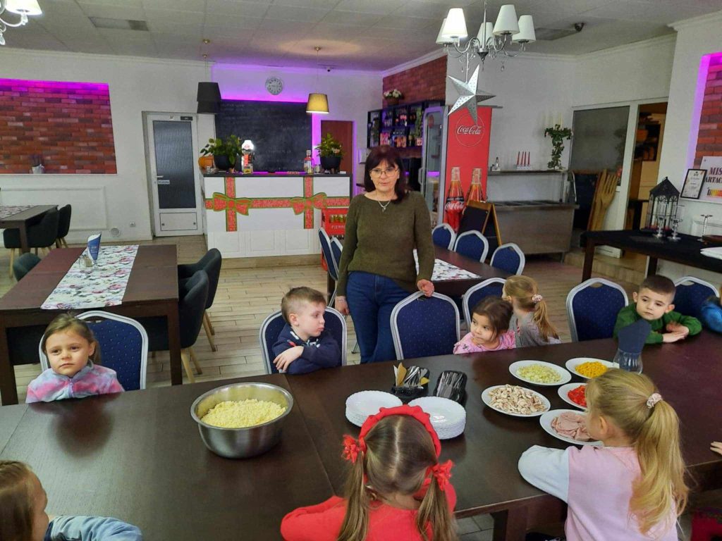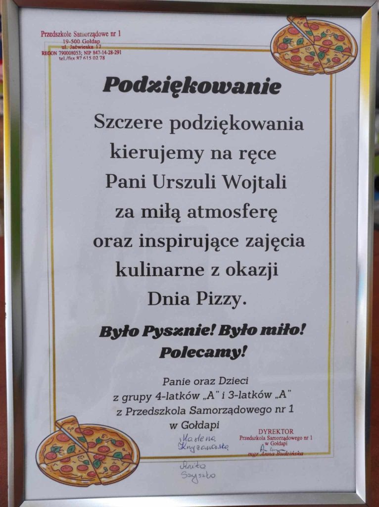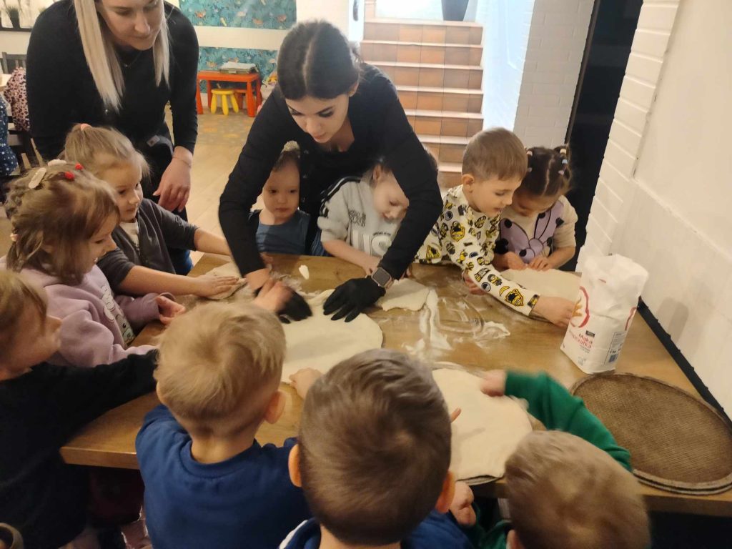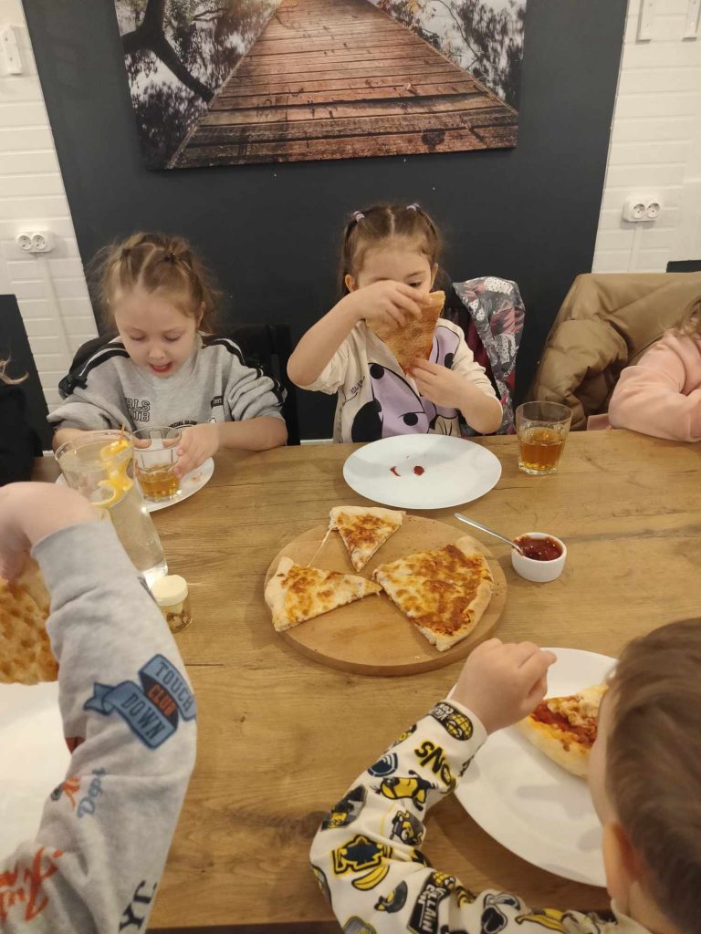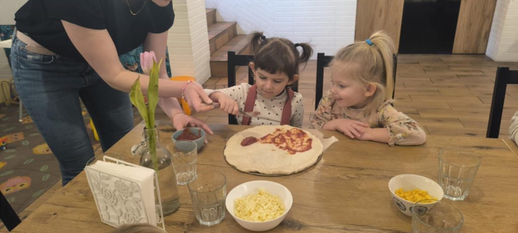9 lutego w naszym przedszkolu obchodziliśmy Dzień Pizzy. Z tej okazji dzieci grupy 4-latków ,,A” , 3-latków ,,A” oraz 5-latków ,,C” wybrały się z wizytą do pizzerii, a pozostałe przedszkolaki wcieliły się w rolę kucharzy w przedszkolu. Dzieci poznały historię pochodzenia pizzy, sposób jej przygotowania oraz potrzebne składniki. Po części teoretycznej mogły przystąpić do działania. Z wielkim zaangażowaniem zabrały się do pracy. Ugniatały ciasto, formowały placki, smarowały sosem, układały ulubione składniki: wędlinę, paprykę, kukurydze i posypywały wszystko serem. Przygotowane pizze trafiły do pieca. Piękne zapachy rozchodziły się po całym przedszkolu. Dzieci z niecierpliwością czekały na degustację swojej pizzy, które w mgnieniu oka zniknęły z talerzy.