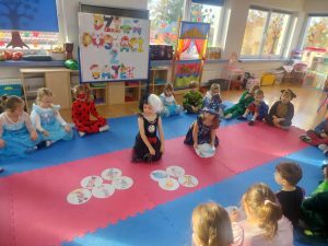 i zwierzątek z ulubionych opowieści. Dzieci brały udział w zabawach, quizach, tańcach, a także opowiadały o swoich ulubionych bohaterach. Był to radosny dzień pełen śmiechu i fantazji, który przypomniał nam, że bajki uczą dobra, przyjaźni i odwagi.