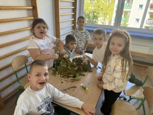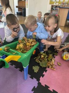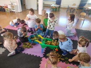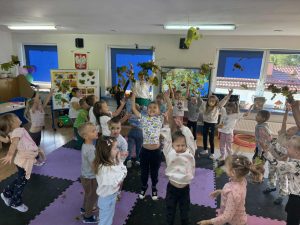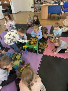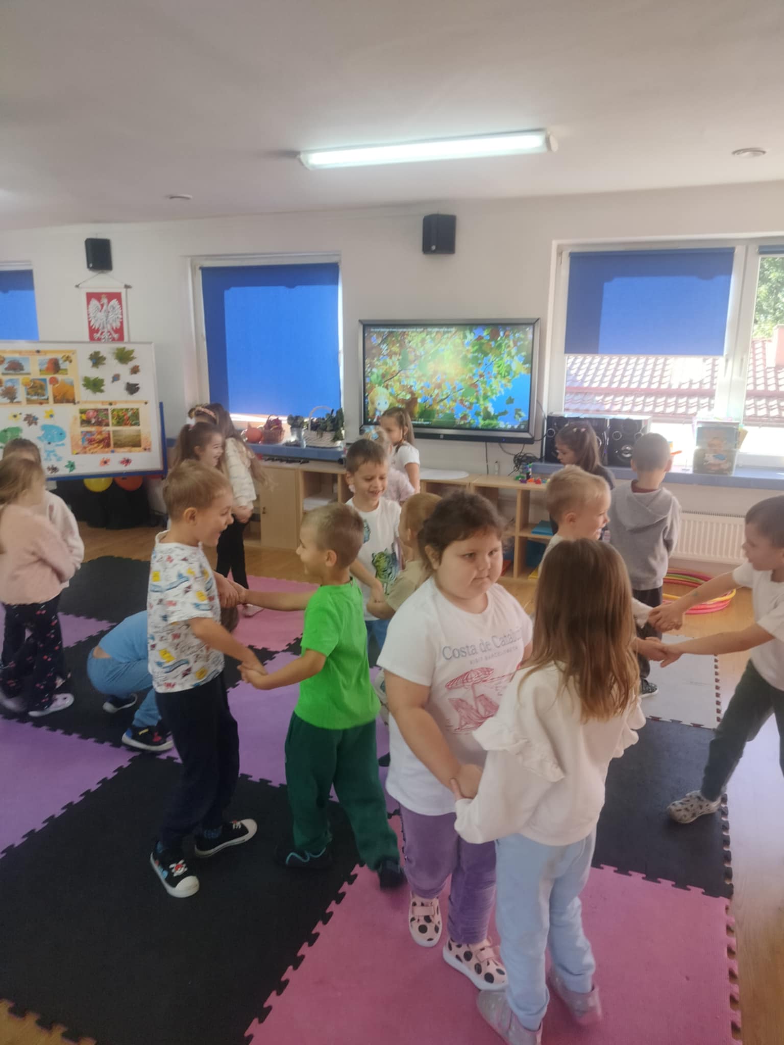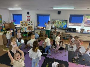 24 września 2025 r. dzieci z grupy 5-latków „A” świętowały Dzień Spadającego Liścia. Tego dnia przedszkolaki poznały różne gatunki drzew. Nauczyły się rozróżniać je po liściach i dowiedziały się, dlaczego liście jesienią opadają. Podczas zabaw mali odkrywcy obserwowali: złote, czerwone i brązowe liście. To była piękna przygoda i kreatywna podróż w świat jesieni pełna uśmiechu i ciekawości!