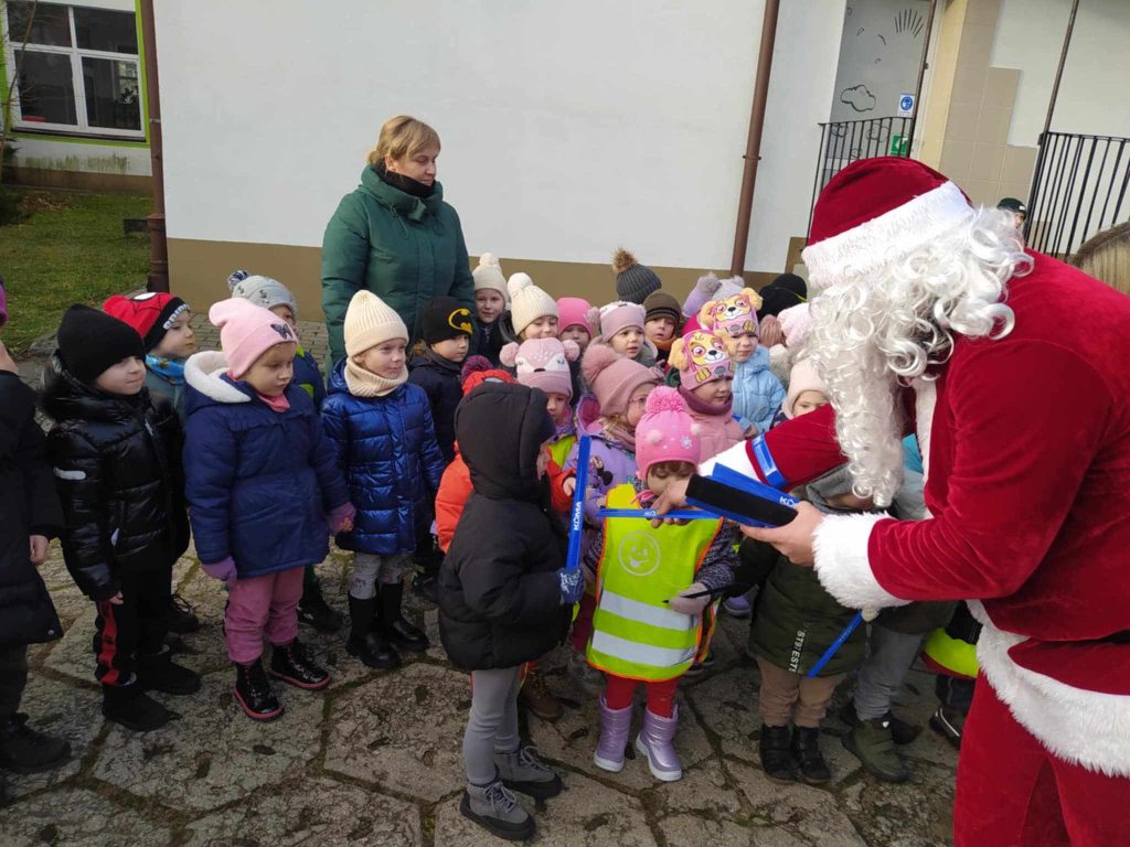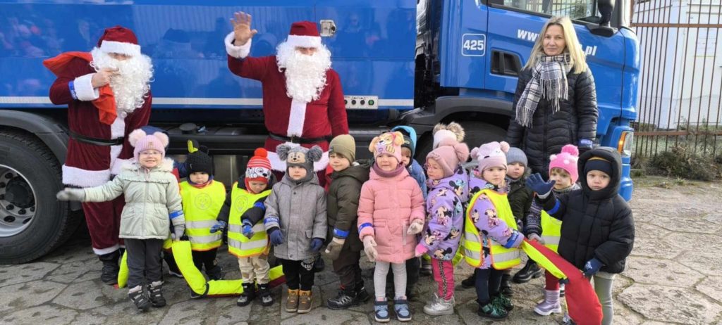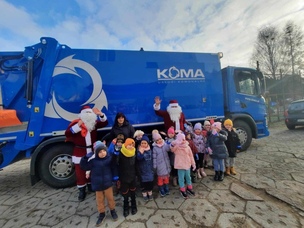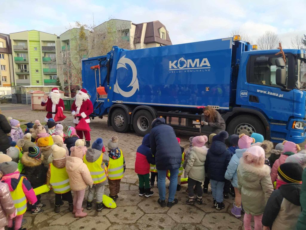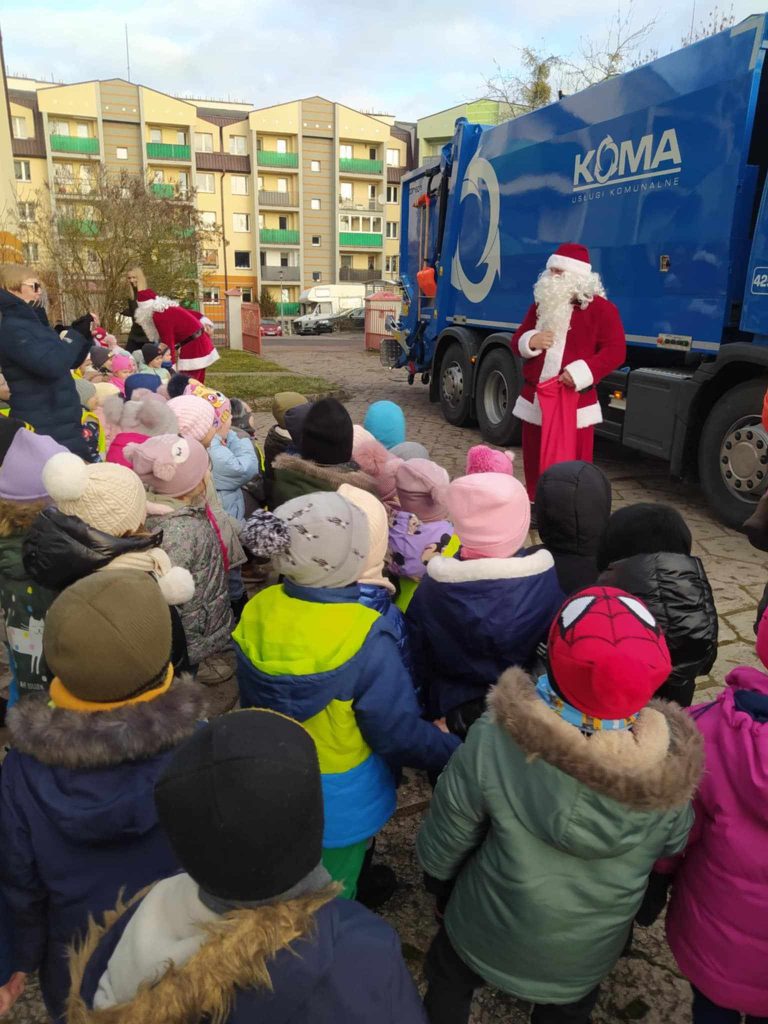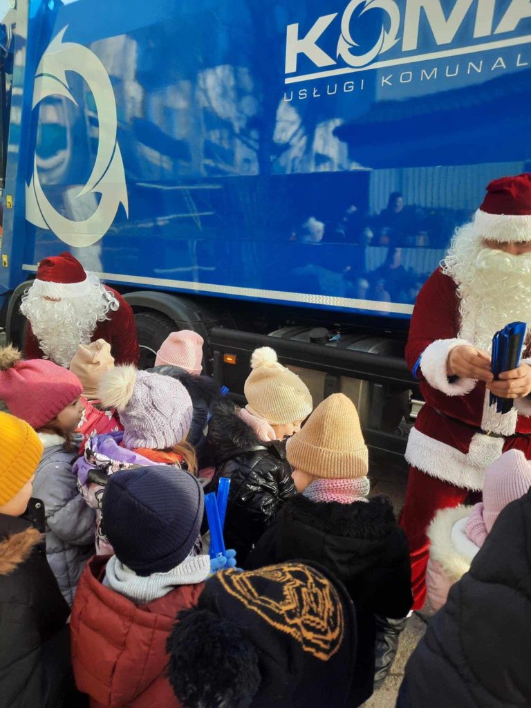 W miniony czwartek w Przedszkolu Samorządowym nr 1 w Gołdapi miało miejsce niecodzienne wydarzenie. Na parkingu przedszkola pojawiła się…śmieciarka i wysiadł z niej nie jeden, ale aż dwóch Mikołajów. Ten niesamowity widok wywołał uśmiechy na twarzach wszystkich dzieci. Ubrani w tradycyjne stroje Mikołaje wręczyli przedszkolakom opaski odblaskowe. Takie spotkania są wspaniałą okazją do rozmów na temat, dlaczego warto być EKO.