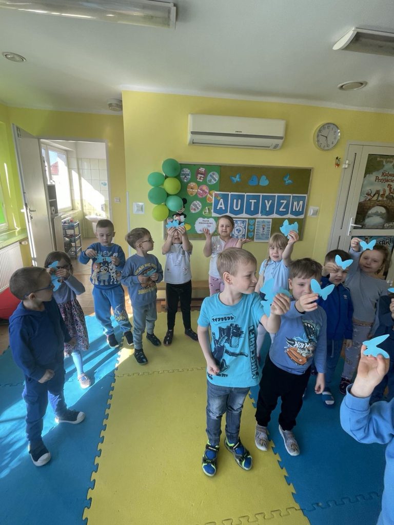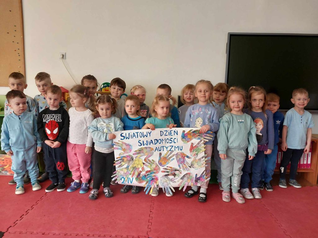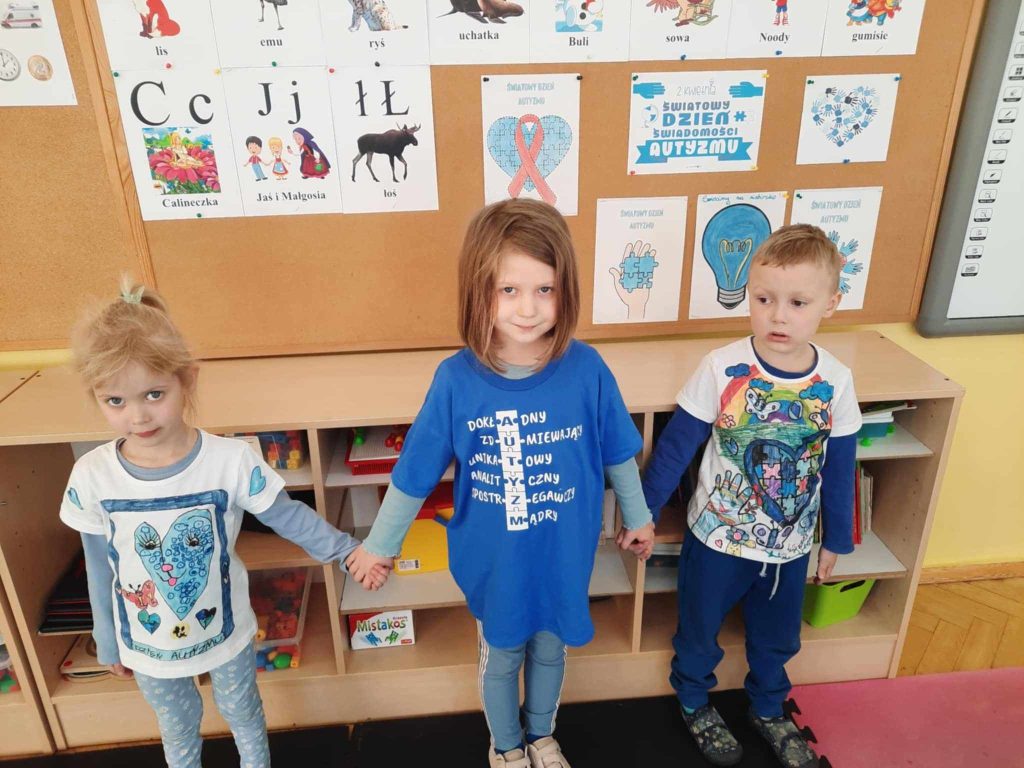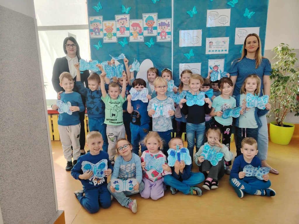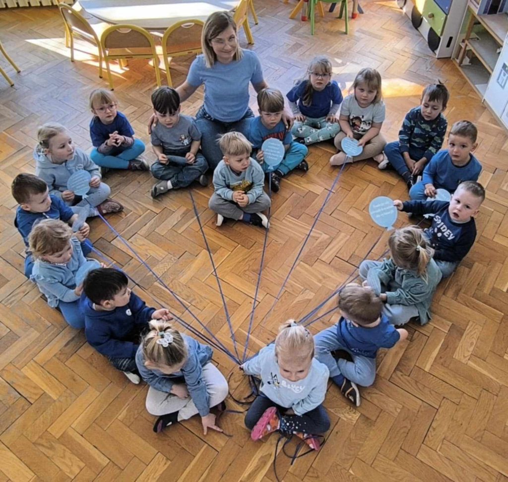 Na znak solidarności z osobami z autyzmem, cała społeczność przedszkola ubrała się na niebiesko. Podczas zajęć rozmawiano o tym, jak można pomóc kolegom i koleżankom, którzy postrzegają świat nieco inaczej. Dzieci obejrzały prezentacje i filmy edukacyjne, wykonywały niebieskie prace plastyczne jako symbol solidarności oraz bawiły się w zabawy rozwijające empatię i szacunek.