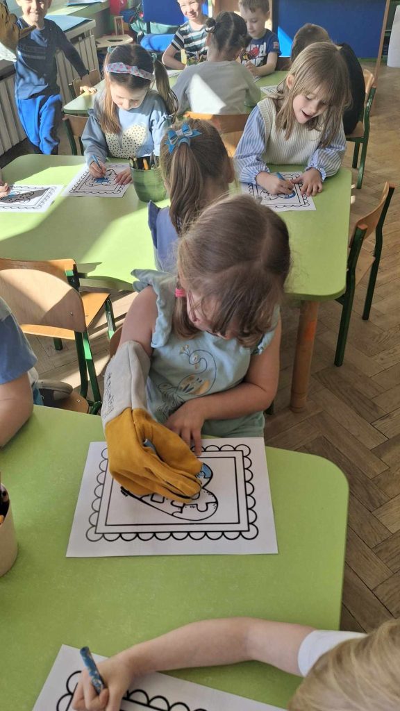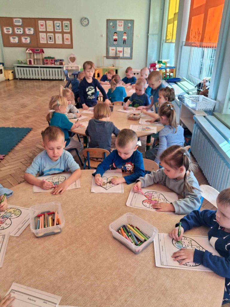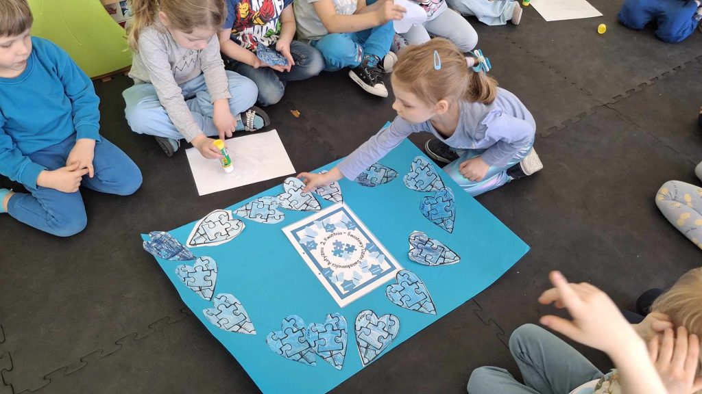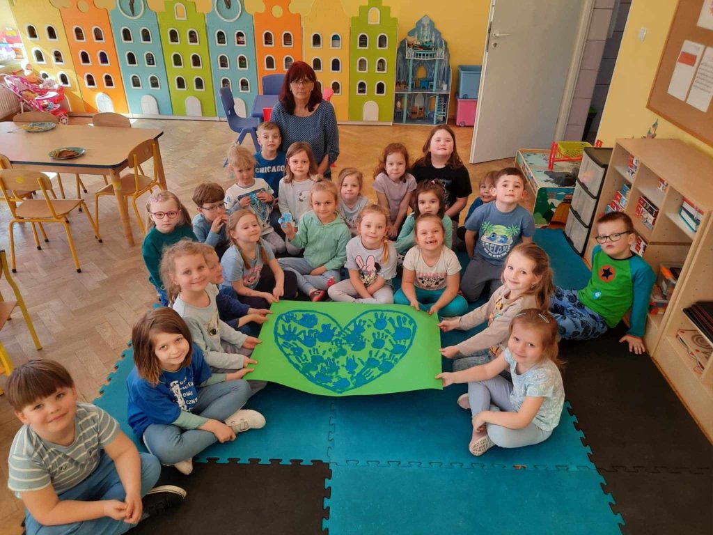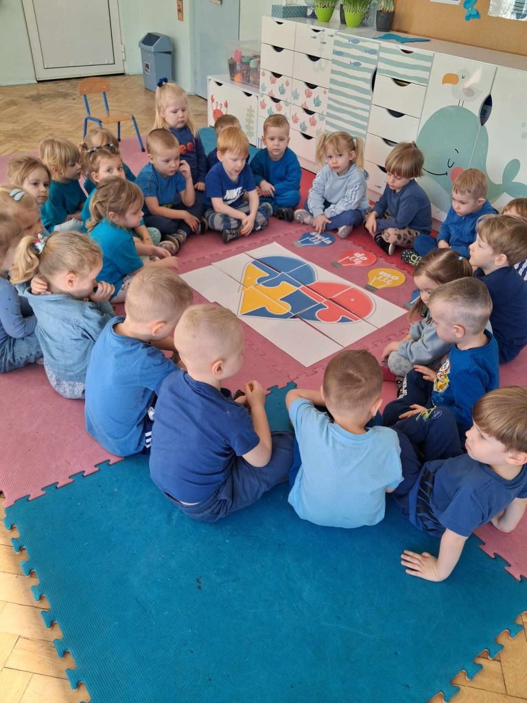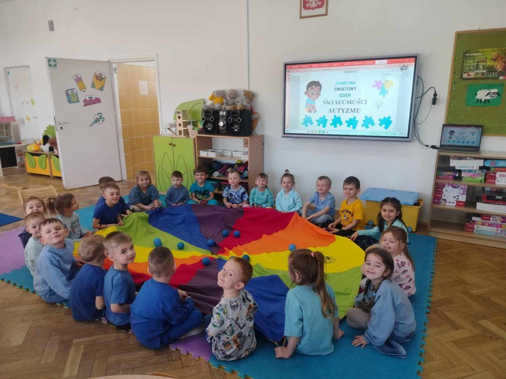 Na znak solidarności z osobami z autyzmem, cała społeczność przedszkola ubrała się na niebiesko. Podczas zajęć rozmawiano o tym, jak można pomóc kolegom i koleżankom, którzy postrzegają świat nieco inaczej. Dzieci obejrzały prezentacje i filmy edukacyjne, wykonywały niebieskie prace plastyczne jako symbol solidarności oraz bawiły się w zabawy rozwijające empatię i szacunek.