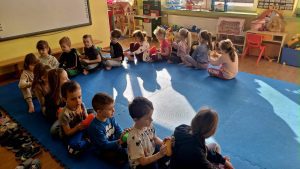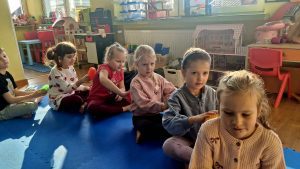 W ramach „Ogólnopolskiego Tygodnia Uważności w Przedszkolu i Szkole” dzieci naszego przedszkola wzięły udział w działaniach promujących spokój, wyciszenie i uważność na własne emocje oraz potrzeby. Celem akcji jest kształtowanie u dzieci umiejętności bycia „tu i teraz”, rozwijanie koncentracji, uważności na siebie i innych, a także wspieranie zdrowia psychicznego już od najmłodszych lat. Dzieci uczestniczyły w różnorodnych aktywnościach. Były to zajęcia kreatywne, ćwiczenia oddechowe, zabawy wyciszające oraz słuchanie relaksacyjnej muzyki. Wspólne działania sprzyjały budowaniu spokojnej, życzliwej atmosfery w grupach.