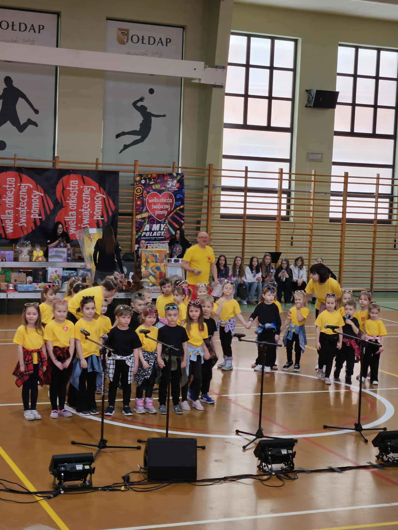 Podczas tegorocznego Finału WOŚP nie zabrakło radosnych uśmiechów. Wszystko za sprawą najmłodszych artystów. Dzieci z grup 5 latków B i 5 latków C z ogromnym zaangażowaniem wystąpiły na scenie, wspierając szczytny cel akcji. Były piosenki, tańce oraz kolorowe stroje. Mimo tremy wykonawcy spisali się znakomicie, a ich występ został nagrodzony gromkimi brawami.