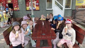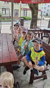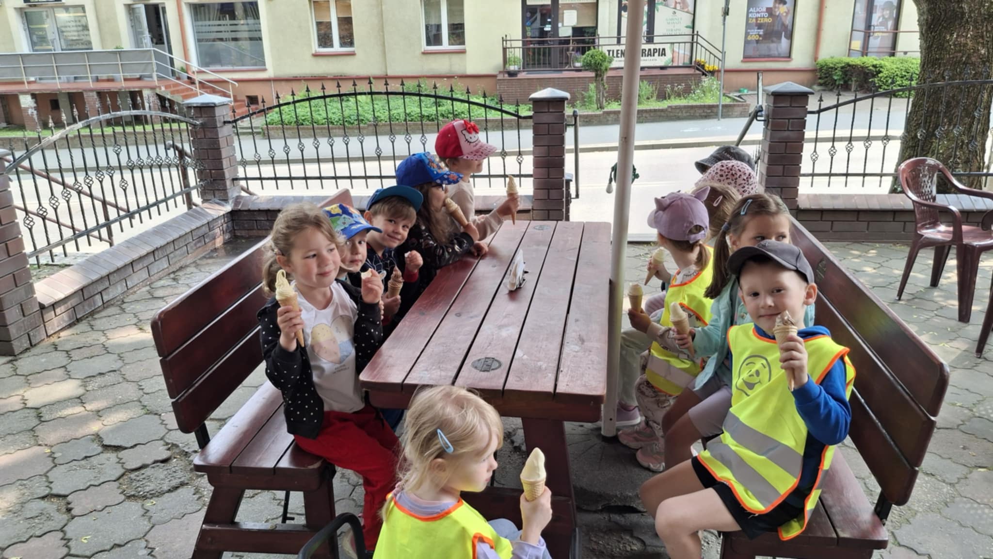 W czerwcu korzystając z pięknej pogody dzieci z Przedszkola Samorządowego nr 1 wraz ze swoimi Paniami wybrały się do lodziarni na pyszne lody. Każde dziecko mogło skosztować loda w swoim ulubionym smaku. Wszystkie buzie były uśmiechnięte i kolorowe od lodów. Ta zimna niespodzianka sprawiła ogromną radość dzieciom oraz dodała odrobinę ochłody w upalny dzień. Dziękujemy Państwu Nasewicz za zaproszenie i pyszne lody.