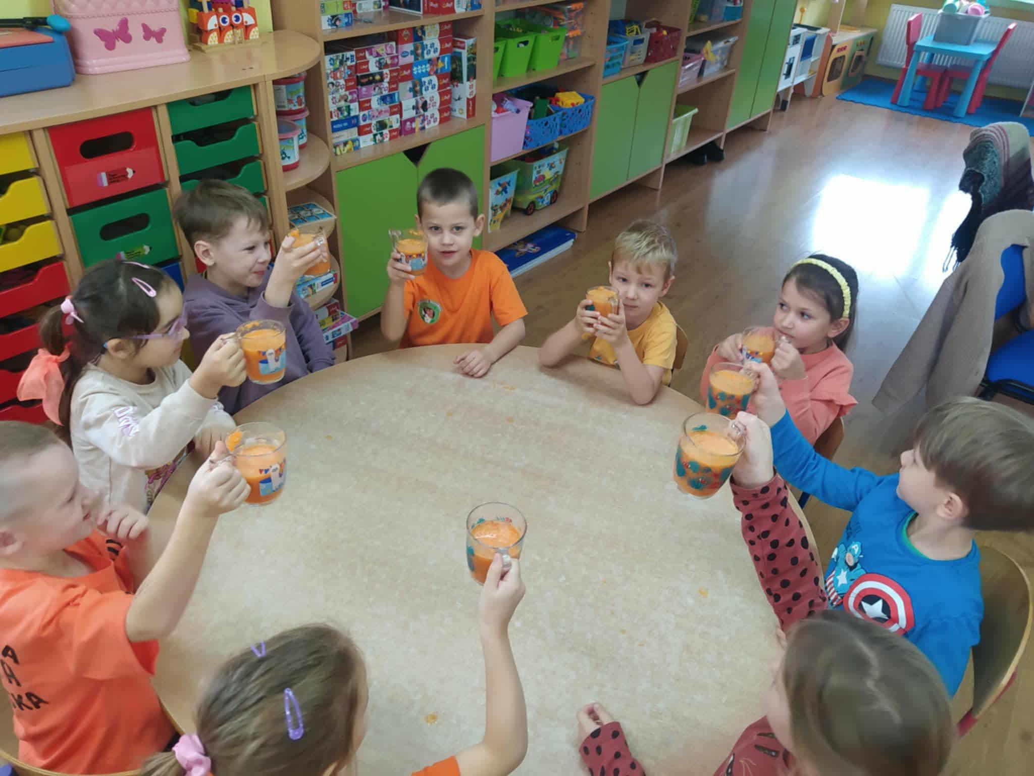 i radośnie. Dzieci nie tylko świetnie się bawiły, ale także uczyły się, dlaczego warto wybierać świeże owoce i naturalne soki. To był dzień pełen energii, uśmiechu i wspólnego działania – dokładnie taki, jak lubimy najbardziej.